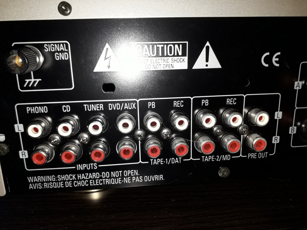 Gramo ani MC už nevlastním. Tak zbývá pouze ten mobil nebo notebook. Jenomže nevím, jak jedno nebo druhé k zesilovači připojit. Na přední straně nic kromě sluchátkového výstupu nic není. Zadní strana má přípojná místa dle obrázku.