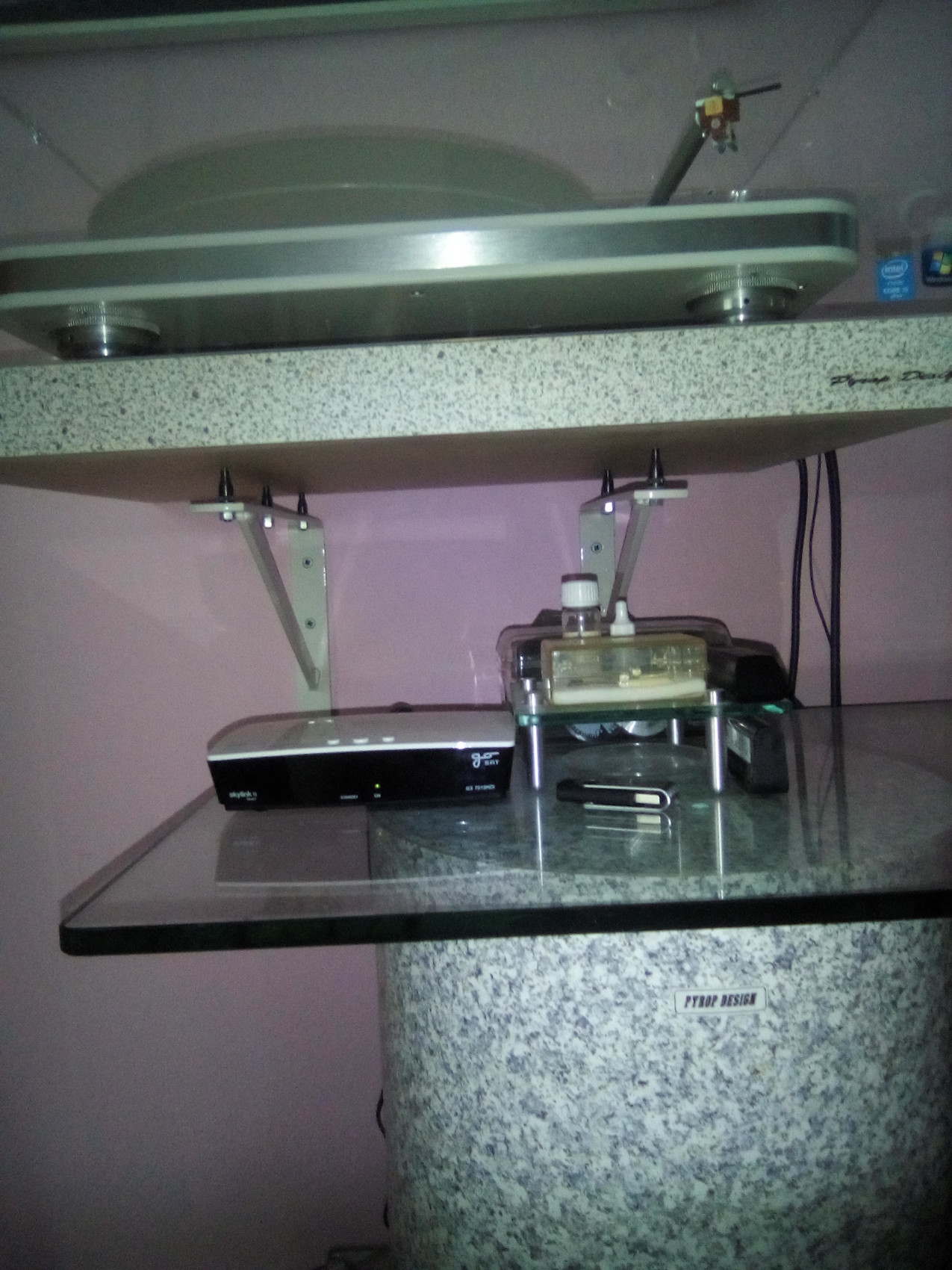gramec Pioneer mám uložen na desce regálu rozepřeném profily (ocelovými čtverci jäkly) mezi podlahu a strop místnosti 6 vloženými svorníky M16, nepřeskakuje nic