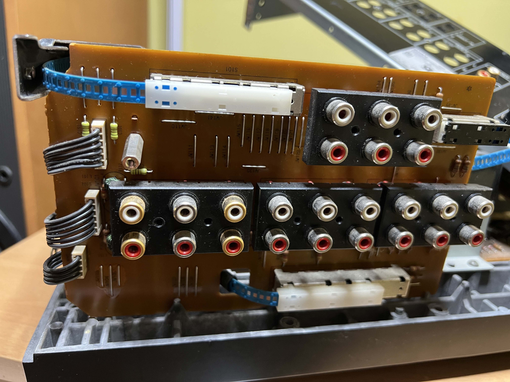 Vypadával signál na několika vstupech. Znalci ví, že častá a běžná závada u takových zesilovačů byl v přepínači vstupů, který měl postříbřené kontakty a ty věkem zčernali... Znalci vědí