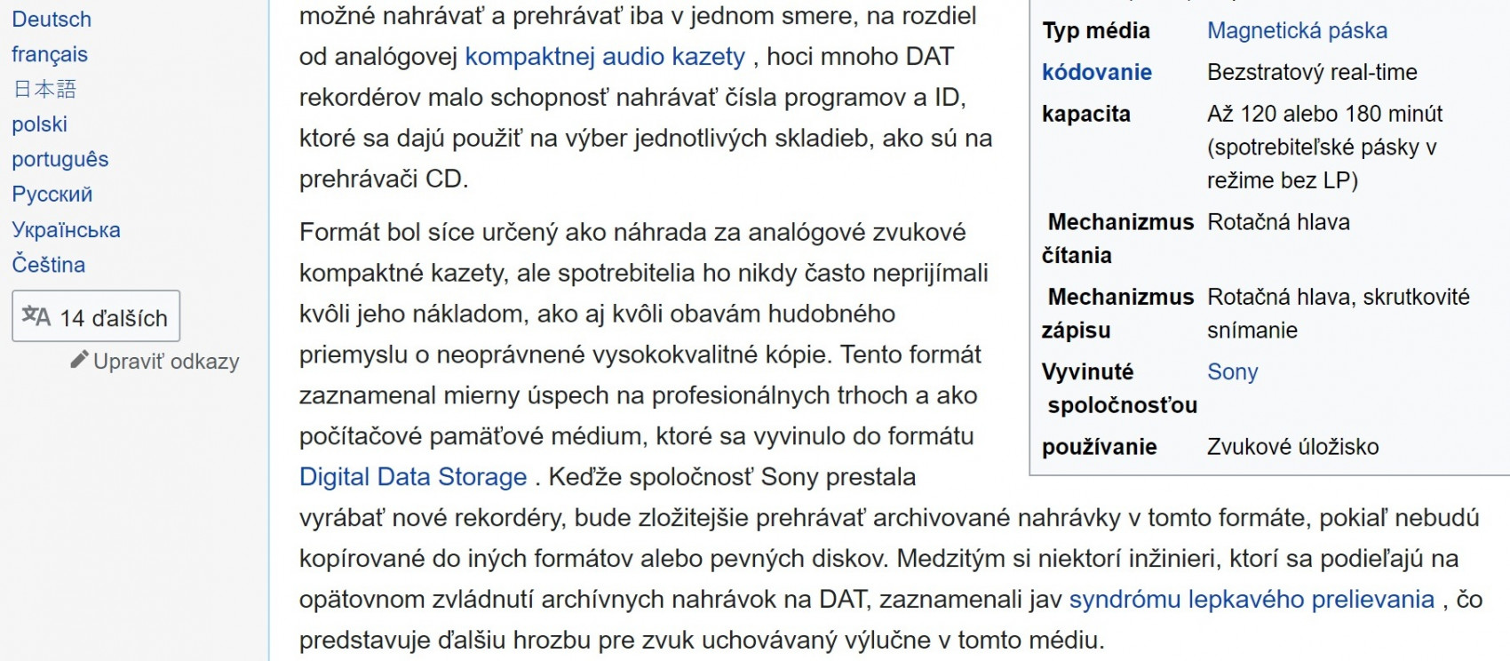 no , ako dlho vydržia pásky DAT ? však už majú nejakých 30 rokov a stále sú v dobrej kondícii . pre nás môžu hrať dobre , lepšie a najlepšie . pre americké uši s americkou prísne tajnou aparatúrou , nie . amerika má všetko najlepšie . aj problémy. všetko dobré pochádza z japonska a dodnes je to plne funkčné. Pomalá lineárna rýchlosť pásky . Veľká šírka pásma .Diagonálne pásy . Rýchlosť pásky 8,15 mm / s