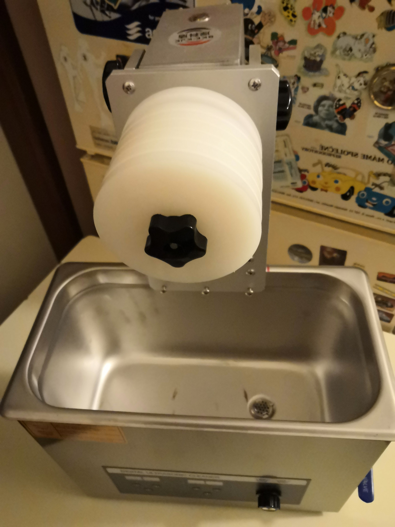 Já právě myslel, že bych pořídil nějakou větší (cca 25l) ultrazvukovou čističku do dílny na motosoučástky a udělal k ní nějaký pohon s držákem na LP. Měla by pak větší využití.