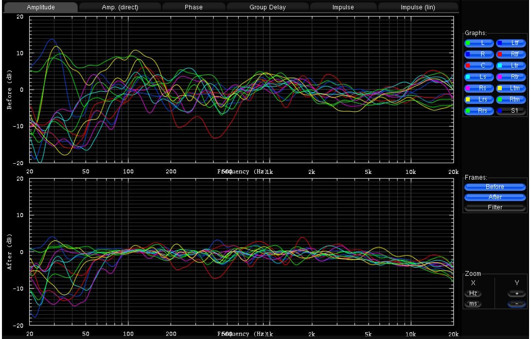 prvy je FR - spodny graf je bez korekcie [offset -10db v REW[, stredny je ciste len zapnuta korekica a horny je taka zaujimava moznost , kedy TRINNOV sa snazi zachovat "charakter" zvuku a len zrovna 2 repro vzajomne na seba.