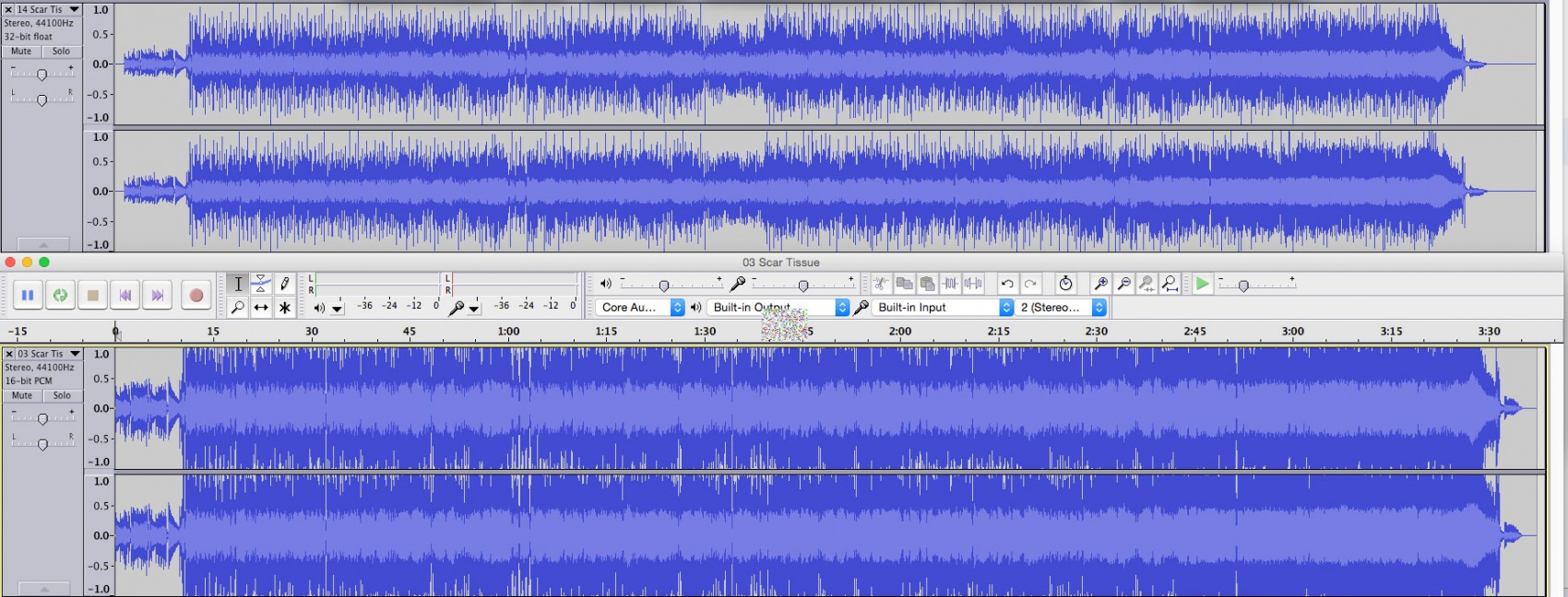 S DR ti tohle ale nijak nepomůže, jak třeba z obrázku tý Metallicy vyčteš, že to první má DR2 a to druhý DR6? Nijak. V Audacity se můžeš podívat na clipping nebo třeba jestli došlo ke srovnání hlasitostí tichejch a hlasitejch pasáží nebo k ořezu, ale o DR ti tohle nic neřekne.