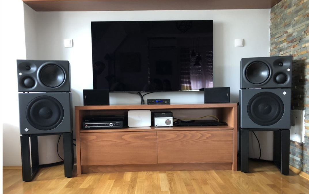 Hudbu počúvam už len z vlastnoručne nagrabovanych súborov v PC. Mám ich pustené len vtedy, ak sedím pri PC. Vzdialenosť uší od Neumannov KH120A je zhruba 1 m. Myslím, že sú aj vyrobené pre tento nearfield ucel. Ich konštrukcia je naozaj fajn, výborne riešené je aj nastavenie vstupu a výstupu. Určite sú aj lepšie monitory, ale na domáce posluchove štúdio stačia.