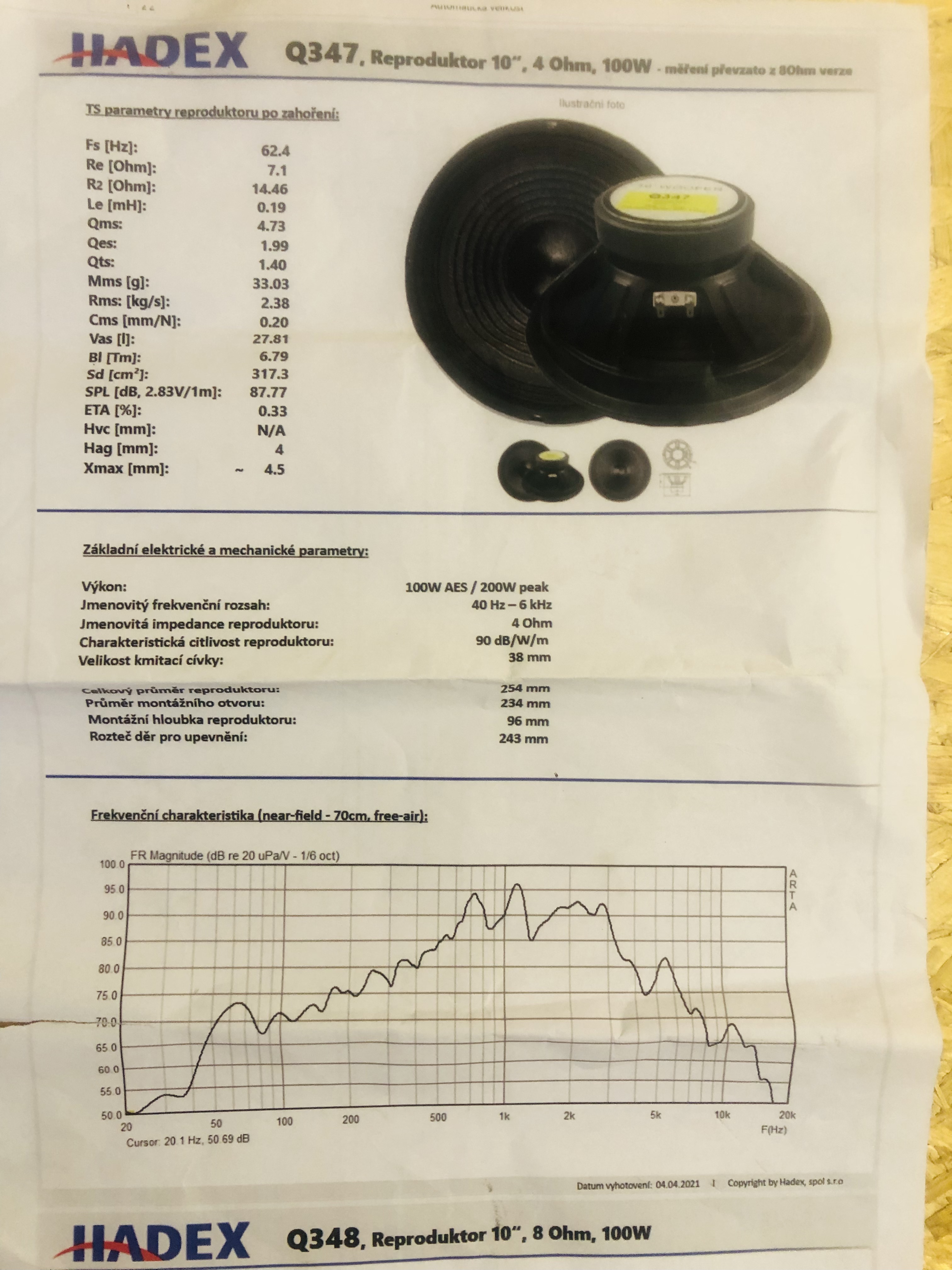 Tak prikladam slibene dokumenty. Kondenzatory a data k reprakum. Uz jsem to projizdel a je pravda ze vyhybka kterou mam osazenou je poddimenzovana. Bude nekdo schopny urcit jakou vyhybku zvolit?
