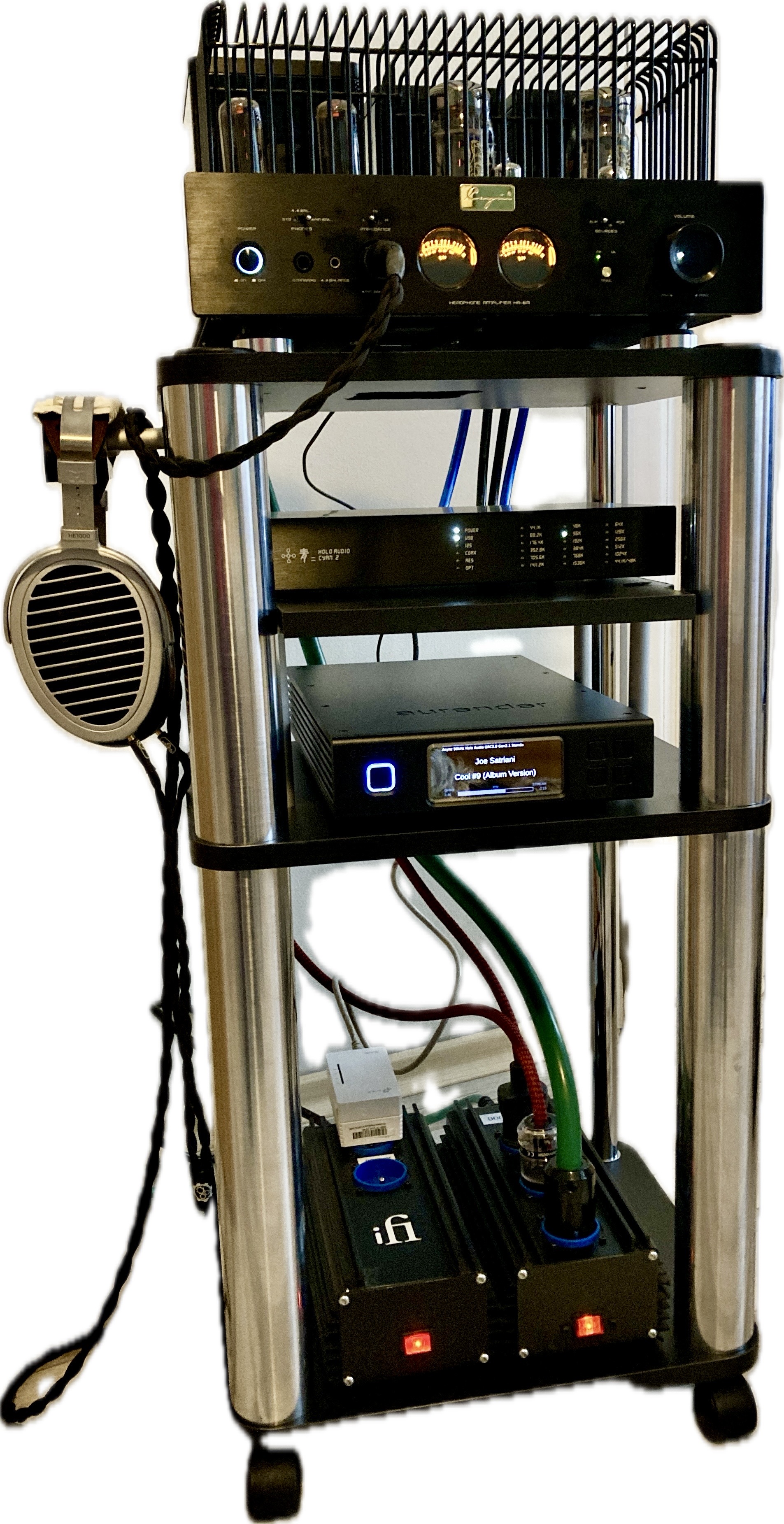 Aurender N100>HoloAudio Cyan2>Hifiman HE1000v2>Cayin HA6-a>Qobuz