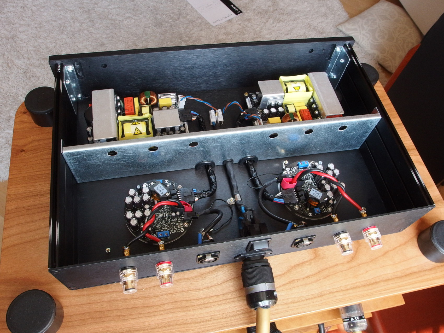 Ty moduly zesilovačů a zdrojů jsou pájene,propojení mezi nimi je kabely s napájenými konektory molex (jako ty v počítači,nedaj se otočit).Hypex a Purifi používám cca 12 let a nikdy jsem neměl žádnej problám,jediné,na co Bruno Putzeys (založil Hypex,poté odešel a založil Purifi) upozorňuje,je mít dobře odvětranej,nebo chlazenej zdroj,jinak to snižuje výkon.