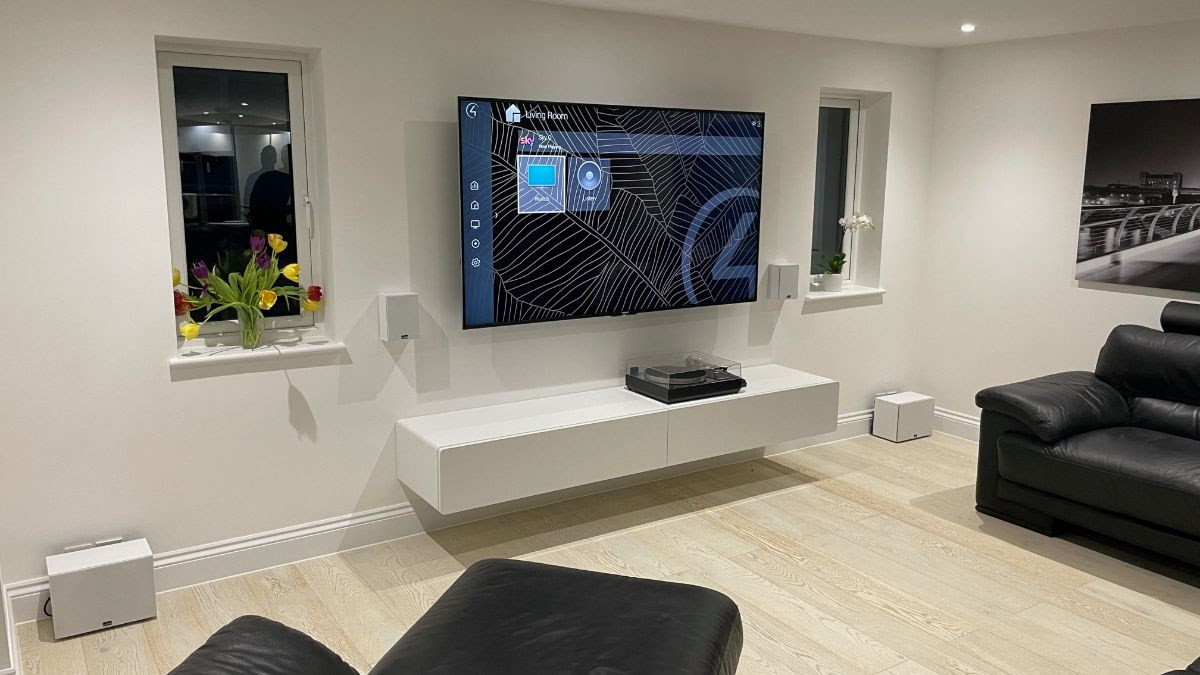 Povedená moderní instalace satelitů Lyngdorf + 2x Subwoofer Lyngdorf: