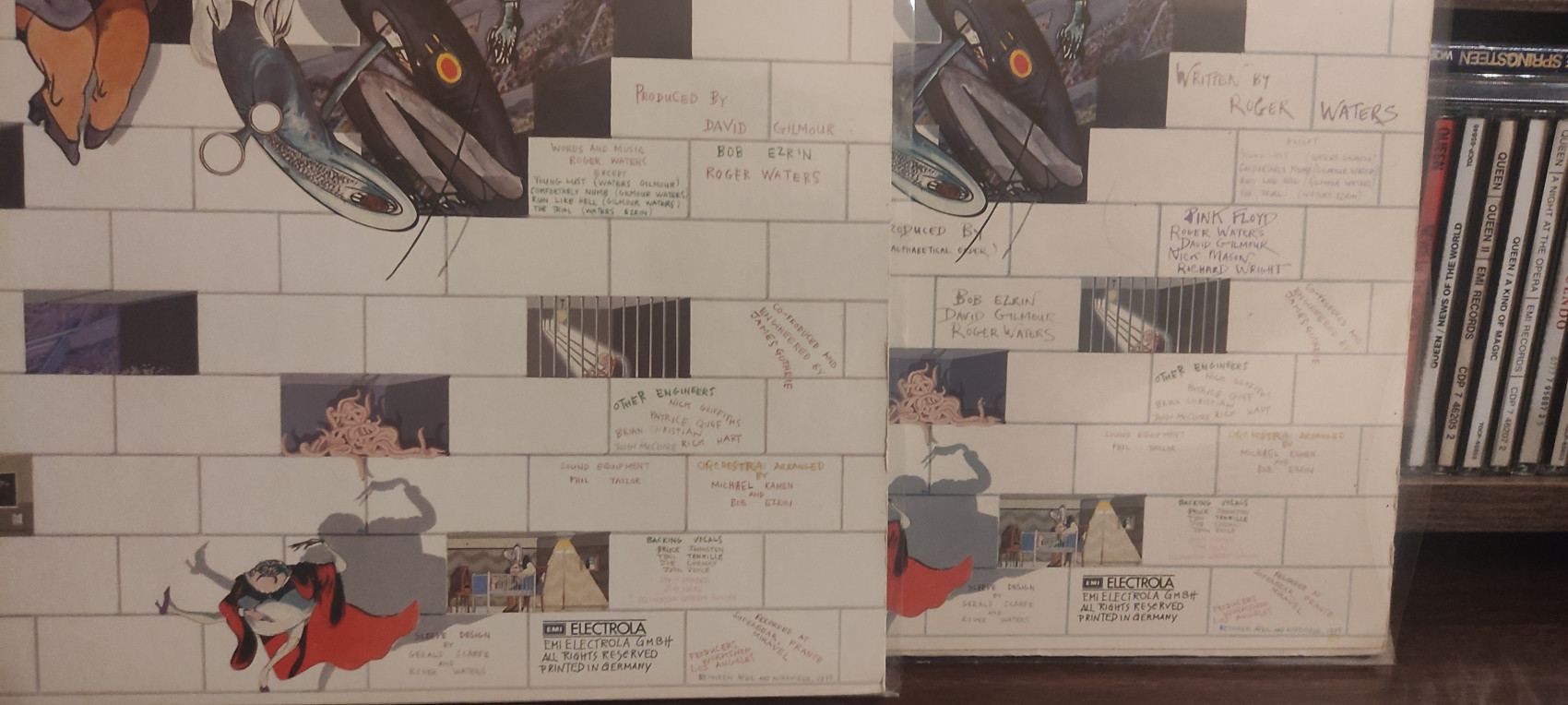 Je li uvedené Writen by Roger Waters, jedná se vždy o druhé a další vydání.Tato vydání obsahují na pravé vnitřní straně jména členů kapely.